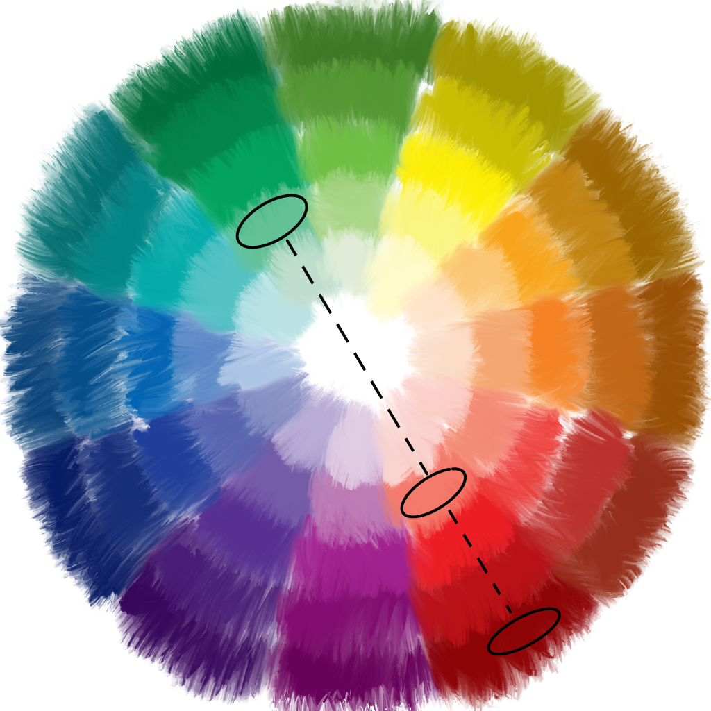 Schemat komplementarny obejmuje kolory, które znajdują się naprzeciwko siebie na kole kolorów: