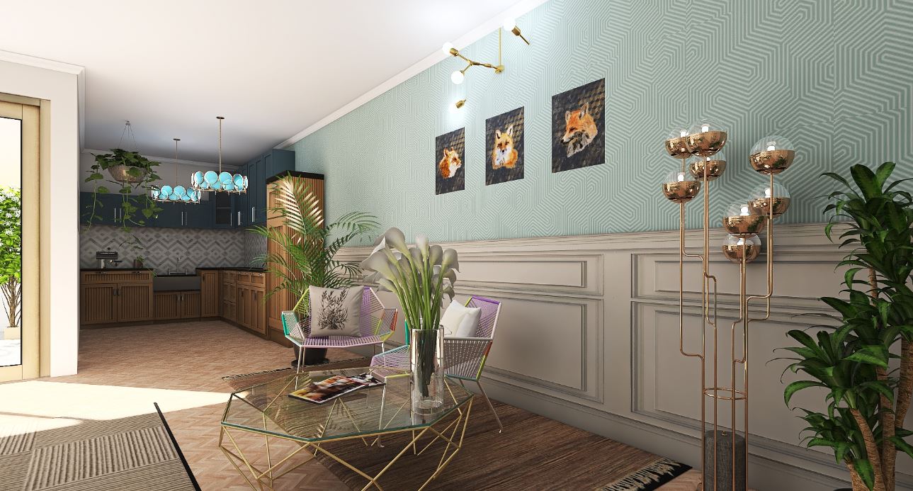 No dobra, oglądanie kolorów tęczy oglądaniem tęczy, ale jak na konkretnym przykładzie zobaczyć dobrze dobrany schemat kolorystyczny? Weźmy przykład triady, czyli mogłoby się zdawać najbardziej nieintuicyjnego i pstrokatego zestawu kolorów i zobaczmy, czy można z nich ułożyć harmonijną kompozycję wystroju wnętrza.